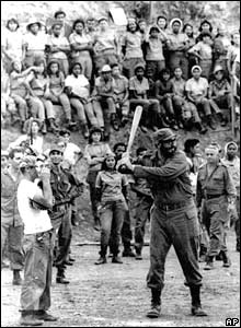 Ông Fidel thích chơi thể thao, thậm chí còn thích cả bóng chày của Mỹ, như đã tham dự một trận đấu tại trường sư phạm ở Sierra Maestra năm 1962 trong ảnh.