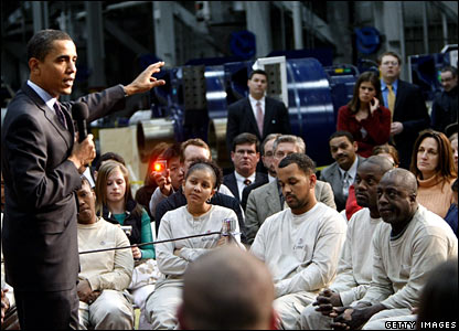 Ông Barack Obama cũng tới Pennsylvania và nói chuyện với các công nhân.