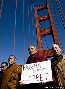 Các vị sư sãi Phật giáo đã đi qua cây cầu Golden Gate Bridge nổi tiếng của San Fransisco để bày tỏ sự tức giận trước hành động của Bắc Kinh.