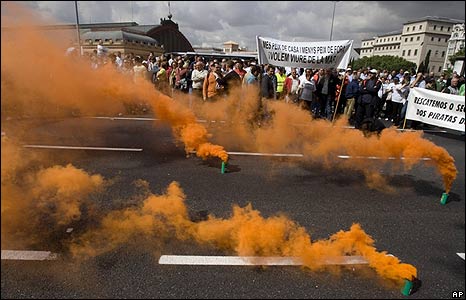 Các cuộc biểu tình diễn ra trên toàn châu Âu để phản đối giá nhiên liệu tăng cao, ảnh hưởng đến khả năng kiếm sống của các ngư dân, nông dân và lái xe. Khoảng 7.000 ngư dân đình công đã có cuộc biểu tình tại Madrid hôm thứ Sáu, 30/5.