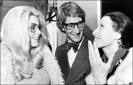 Các ngôi sao nổi tiếng thế giới chen nhau tới xem trình diễn thời trang YSL. Trên ảnh là diễn viên Pháp Catherine Deneuve (bên trái) và ngôi sao balê Xôviết Maia Plissetskaya hồi năm 1973.