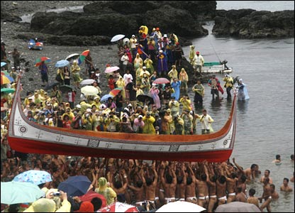 Hàng ngàn người tụ tập trên bến để theo dõi lễ hạ thủy. Họ hò reo khi chiếc thuyền được đẩy xuống nước. Cho dù có quan ngại về tương lai của hòn đảo, truyền thống vẫn là sợi dây kết nối người dân địa phương và khiến họ tự hào. | CÁC BÀI LIÊN QUAN Hình ảnh: Chuyến bay lịch sử Trung-Đài04 Tháng 7, 2008 | Trang Ảnh Philippines đương đầu với mưa bão23 Tháng 6, 2008 | Trang Ảnh Chùa Việt ở Texas mở hội hoa sen 17 Tháng 6, 2008 | Trang Ảnh | ||||||||||||||||||||||||||||||||||||||||||||||||||||||||||||||||||||||||||||