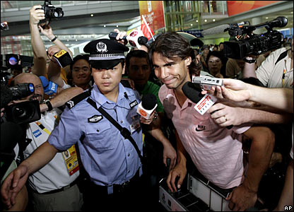 Rafael Nadal, người sẽ sớm trở thành tay vợt hàng đầu của thế giới, lọt qua phi trường quốc tế Bắc Kinh mà không bị để ý.