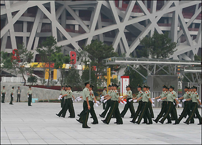 Công an đi đều bước trước sân Tổ chim. Trung Quốc hứa Thế vận hội 2008 sẽ diễn ra trong an toàn. | |||||||||||||||||||||||||||||||||||||||||||||||||||||||||||||||||||||||||||||