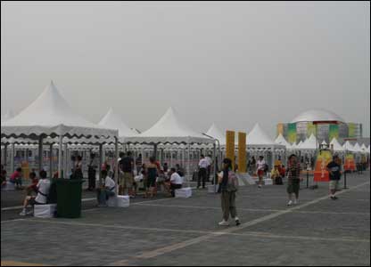 Đây là khu vực được lập riêng cho khán giả có vé đi vào sân vận động Tổ chim cho lễ khai mạc Olympics lúc 8h08 tối ngày 8 tháng 8.