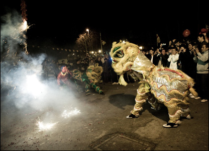 Màn múa lân và đốt pháo lúc giao thừa khiến những người con xa xứ như được sống lại trong bầu không khí lễ hội nơi quê nhà.