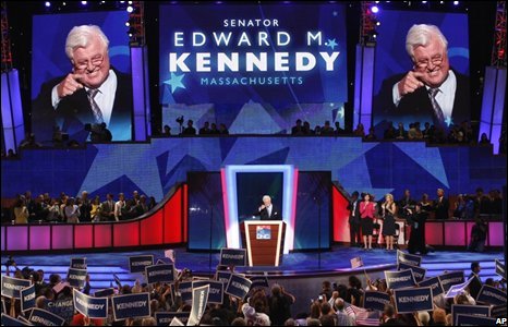 Thượng nghị sĩ Edward Kennedy, gần đây bị ung thư não, bất ngờ xuất hiện tại hội nghị, cho biết ông nhất định phải đến dự.