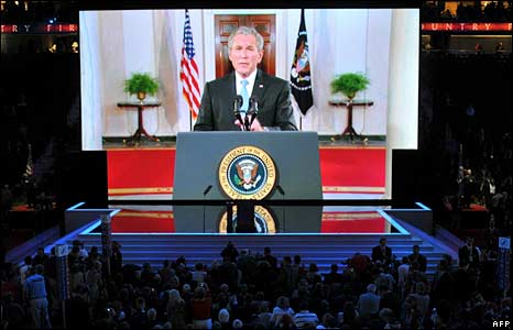 Nói chuyện qua đường liên lạc video từ Washington, Tổng thống George W Bush nói ông McCain đã "sẵn sàng lãnh đạo" và bảo vệ Hoa Kỳ.