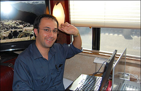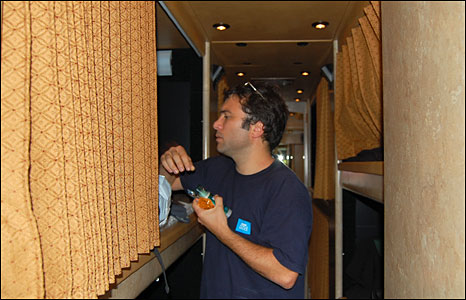 Mỗi chặng hành trình ngoài các ban tiếng Anh còn có hai ban ngôn ngữ trong BBC Thế giới vụ. Lúc nào trên xe bus cũng có ít nhất 12 người. Anh bạn Hassan Solhjou, từ ban Iran, đi cùng tôi trong chặng 5 ngày đầu tiên.