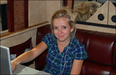 Ngoài blog, trên xe bus còn có một người chuyên quay video về những gì xảy ra dọc hành trình, và đó là Jennifer Copestake. Các video clips này cũng sẽ được đưa lên mạng BBC tiếng Anh.