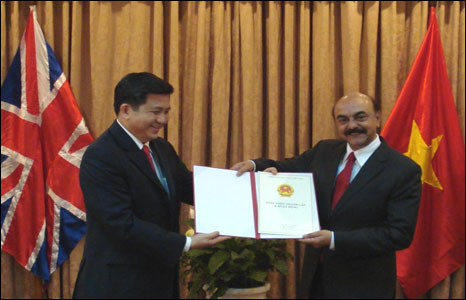 Tổng Giám Đốc Standard Chartered Việt Nam Ashok Sud (bên phải) trong lễ nhận giấy phép mới nói rằng Việt Nam là thị trường quan trọng của Standard Chartered tại Á châu | CÁC BÀI LIÊN QUAN Tuần kỷ niệm 35 năm quan hệ Anh - Việt09 Tháng 9, 2008 | Trang Ảnh Cuộc thi ảnh Anh -Việt: Kết nối tình thân25 Tháng 8, 2008 | Chuyên đề | ||||||||||||||||||||||||||||||||||||||||||||||||||||||||||||||||||||||||||||