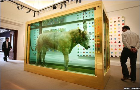 Buổi đấu giá kéo dài hai ngày, do công ty Sotheby đảm trách. Đây là một sự kiện hiếm thấy khi nghệ sĩ dùng công ty đấu giá để bán tác phẩm của mình. Trong ảnh là "Con bê vàng" ngâm trong dung dịch phoọc môn có người mua với giá $19 triệu đô la.