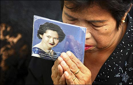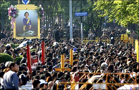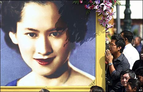 Hàng ngàn người Thái tập hợp hai bên đường nơi xe tang đi qua để tiễn biệt công chúa lần cuối, trong khi hàng triệu người ngồi coi lễ qua tivi ở nhà