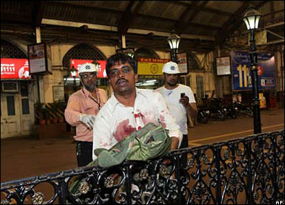 Các tay súng cũng tấn công ga tàu hỏa chính ở Mumbai. Hành khách chạy trốn khỏi nhà ga khi thấy súng nổ, bỏ lại hành lý bên trong. 10 người chết.