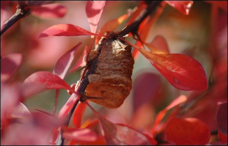 Lorraine Phillips: "Tôi tìm thấy trứng bọ ngựa nằm giữa những lá đỏ trong vườn đằng sau."
