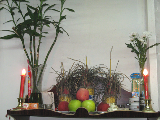 Trong xưởng cũng có bàn thờ phục vụ cho nhu cầu tâm linh của công nhân.