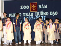 Xen giữa phần phát biểu là vũ khúc "Bốn Bể Một Nhà" và bài hát "Càng Đông Càng Vui" do một số Ấu và Thiếu Sinh trình diễn, thể hiện tinh thần anh chị em thân hữu, bốn bể đều là anh chị em. Nhạc sĩ Hoàng Ngọc Tuấn đã làm cho không khí của buổi họp mặt trở nên sôi động với bài hát "Hò Dô Ta" quen thuộc được mọi người cùng hò theo và MC Lưu Dân tiếp nối với những điệp khúc trào lộng khiến toàn thể hội trường được một phen vừa hát hò vừa cười nghiêng ngả. Mục thủ công kỷ niệm do các Tráng và Thanh Sinh chủ xướng đã giúp tạo thêm một kỷ niệm đáng nhớ. Buổi họp mặt thân mật nhân dịp 100 năm HĐTG kéo dài mãi đến gần 2 giờ trưa mới thực sự kết thúc với bữa ăn trưa "thanh đạm" mà quá nhiều món ngon miệng (do tài khéo léo của các phụ huynh nữ chuẩn bị từ nhiều ngày trước) cùng nhiều câu chuyện quá vui giữa các tham dự viên đều có ít nhiều "tâm hồn Hướng Đạo". | Diễn đàn BBC CÁC BÀI LIÊN QUAN Hình ảnh đại hội hướng đạo thế giới10 Tháng 8, 2007 | Trang Ảnh | ||||||||||||||||||||||||||||||||||||||||||||||||||||||||||||||||||||||||||||