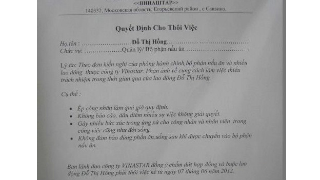 Một lao động còn cáo buộc công ty dùng hộ chiếu của người khác để cô đi chữa bệnh và có ý nói công ty không đăng ký người lao động với cơ quan địa phương của Nga.