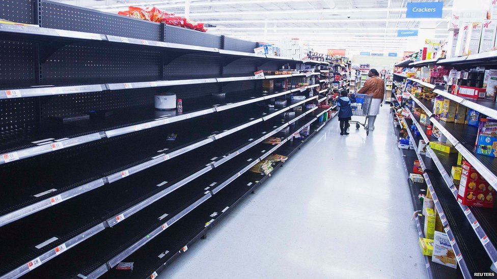 Các loại hàng hóa cơ yếu hết sạch trong nhiều cửa hàng, siêu thị vì người Mỹ đã chuẩn bị sẵn sàng cho tình huống khẩn cấp.