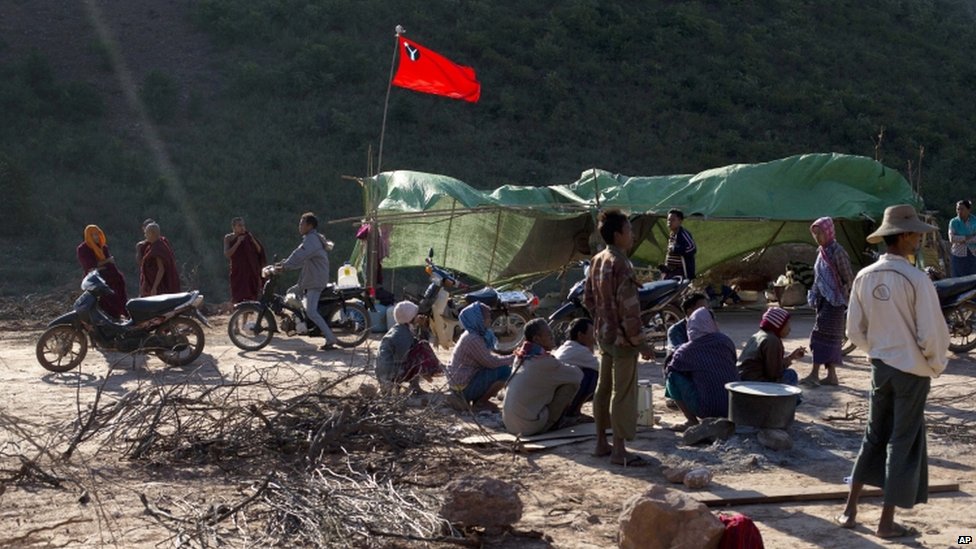 • Nhà sư và dân địa phương dựng trại xung quanh khu mỏ, tuyên bố rằng dân bị buộc phải bỏ đất cho dự án mở rộng.