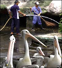 Một sở thú ở thủ đô Jakarta của Indonesia vừa bị tạm đóng cửa bắt đầu từ thứ Hai vì người ta phát hiện ra một số loài chim quý ở đây đã bị nhiễm virus cúm avian. Sở thú này vốn là nơi hấp dẫn nhiều khách thăm quan nhưng sẽ bị đóng cửa trong ba tuần tới. Cúm gia cầm đã làm bốn người ở Indonesia thiệt mạng. Tổ chức Y tế Thế giới cảnh báo rằng virus cúm gia cầm đang tiếp tục phát triển và nguy cơ lây truyền từ người sang người vẫn còn. Các quan chức Indonesia nói 19 con chim, trong đó có chim công, chim sáo minah, gà cỏ và đại bàng đã bị lây cúm avian. Nay người ta đang làm xét nghiệm các loại thú khác trong vườn cũng như kiểm tra sức khỏe 500 công nhân viên. Các loài chim mắc bệnh nếu không phải thực sự quý hiếm sẽ bị thiêu hủy. Còn lại sẽ được chữa chạy. Thông tin mới nhất này đã càng làm tăng nỗi lo của người dân Indonesia trước sự lây lan của bệnh cúm gia cầm. Hồi đầu tháng Chín, một phụ nữ 37 tuổi đã thiệt mạng, nâng con số người chết vì virus H5N1 lên bốn người. Hai trẻ em, trong đó một em là người nhà của người phụ nữ đã chết, hiện đang nằm viện thể theo dõi triệu chứng cúm gà. Mẫu máu của các em đã được gửi tới một phòng thí nghiệm đặc biệt ở Hong Kong để quan sát thêm. |