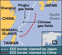 Các báo cáo trong mấy ngày qua cho thấy giới chức Trung Quốc giờ đây cấm tàu thuyền không được phép đi qua khu mỏ khí Pinghu từ giờ cho đến cuối tháng Chín. Người ta nghi ngờ rằng Trung Quốc đang mở các hệ thống ống dẫn của họ trong giai đoạn này. Bộ trưởng Nội các Nhật, Shinzo Abe, nói nếu các báo cáo là đúng thì lệnh cấm này vi phạm luật biển. Ông cho biết Bắc Kinh đã đảm bảo với Tokyo rằng họ sẽ điều tra chuyện này. | TRANG NGOÀI BBC BBC không chịu trách nhiệm về nội dung các trang bên ngoài. | ||||||||||||||||||||||||||||||||||||||||||||||||||||||||||||||||||||||||||||