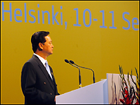Giới chức Âu châu được biết đã gặp riêng với Ngoại trưởng Miến điện U Nyan Win bên lề hội nghị ở Helsinki. "Chúng tôi lập lại quan niệm lâu nay của chúng tôi là sự thiếu vắng của dân chủ và nhân quyền ở Miến điện," Markus Lyra, Thứ trưởng Ngoại giao Phần lan nói. Thủ tướng Phần lan Matti Vanhanen cũng thúc dục nhà cầm quyền quân nhân ở Miến điện hãy trả tự do cho tất cả tù chính trị và kêu gọi hãy để các đảng đối lập hoạt động. "Tình hình ở đó vẫn là mối quan tâm lớn của các nước trong vùng và trên thế giới." Tuy nhiên giới chức Phần lan cho biết có dấu hiệu tốt từ cuộc gặp với Ngoại trưởng U Nyan Win. Tin từ Rangon cuối tuần qua cho hay chính quyền quân nhân sẽ mở lại hội nghị lập hiến vào tháng sau. Thiếu tướng Thein Sein cho biết, đại hội quốc dân do ông chủ trì, có nhiệm vụ xây dựng hiến pháp mới, sẽ tái nhóm họp vào ngày 10/10 tới tại Naypyidaw, thủ đô hành chính mới của Miến điện. | |||||||||||||||||||||||||||||||||||||||||||||||||||||||||||||||||||||||||||||