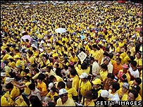 Một trong những hình ảnh nổi tiếng nhất là khi ông chấm dứt bạo lực năm 1992, chỉ bằng vài lời khe khẽ với hai đối thủ chính, những người quỳ mọp bên ông. Đầu năm nay, ông gây ảnh hưởng khiến tòa án hủy kết quả cuộc bầu cử gây tranh cãi tháng Tư, khi mô tả tình hình là "đống lộn xộn." Nhưng vua Bhumibol luôn thận trọng không tỏ ra dính líu chính trị quá lộ liễu. Chỉ cần một cái gật đầu hay một lần xuất hiện ngắn trên tivi là đủ để bày tỏ ý của ông. "Nhà vua rất khéo léo," Sulak Siwalak nói. "Ông không bao giờ dính líu quá lộ. Nếu cuộc đảo chính lần này đi sai đường, Sonthi sẽ bị trách cứ, nhưng dù kết quả thế nào, nhà vua sẽ chỉ được khen." Người Thái tin vào nhà vua đến mức nhiều người tin rằng nếu quả thực vua đã can thiệp, thì rõ ràng đó là hướng đi hợp lý nhất. Giáo sư Thitinan tin rằng nhà vua đã cho phép đảo chính diễn ra vì đó là lựa chọn tốt nhất có được hiện nay. "Chúng tôi đang có nguy cơ chứng kiến bạo lực trên đường phố," ông nói thêm, ám chỉ các sự kiện cam go trong mấy tháng qua, như các cuộc biểu tình trên phố. Quan hệ với Thaksin Nhưng một lý do khác khiến đảo chính xảy ra là khoảng cách ngày một tăng giữa hoàng gia và thủ tướng.