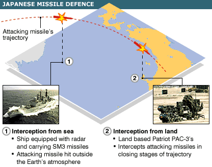 Nhật bản vừa lần đầu tiên triển khai hệ thống phòng thủ tên lửa di động ở phía bắc Tokyo vào hôm Thứ Sáu, nhằm bảo vệ thủ đô khỏi nguy cơ bị tấn công bằng hoả tiễn. Thiết bị đã được đưa vào sử dụng sớm hơn một năm so với kế hoạch dự kiến, sau khi Bắc Hàn phóng tên lửa và tiến hành vụ thử hạt nhân hồi năm ngoái. Hệ thống phòng thủ tên lửa Patriot có khả năng bắn hạ vào giai đoạn cuối cùng, khi các tên lửa tới gần mục tiêu. Mỗi lần tấn công, hệ thống này có thể hạ tới 16 tên lửa và có tầm hoạt động trong phạm vi vài chục km. Đây là hệ thống di động. Mỗi khi lo ngại bị tấn công bằng tên lửa, dàn phòng thủ sẽ được chuyển tới Căn Cứ Phòng Thủ Tự Vệ Không Quân đặt tại trung tâm Tokyo để bảo vệ các toà nhà chính phủ và các mục tiêu khác. Chừng 50 người biểu tình đã tới đón mừng đoàn xe chở các thiết bị này. Quan hệ quân sự với Hoa Kỳ Để hệ thống có thể hoạt động, Nhật Bản và Hoa Kỳ phải chia sẻ thông tin ở mức độ nhiều hơn hơn. Điều này khiến một số người lo lắng, đặt câu hỏi rằng chuyện ghép các lực lượng phòng vệ của Nhật vào với quân đội Mỹ có phải là điều thoả đáng không, khi mà Nhật Bản chính thức theo đường lối hoà bình. Về phần mình, chính phủ Nhật cho rằng đây hoàn toàn là một bước đi tự vệ cần thiết. Bắc Hàn bị coi là mối đe doạ thực sự đối với an ninh Nhật Bản. Việc triển khai sớm mới chỉ là giai đoạn đầu tiên. Trong vòng ba năm, Nhật lên kế hoạch có 30 bệ phóng đặt tại 10 địa điểm trên cả nước và lắp đặt bốn thiết bị phá huỷ tên lửa tầm xa để xây dựng lá chắn hữu hiệu trên biển. HỆ THỐNG PHÒNG THỦ TÊN LỬA CỦA NHẬT