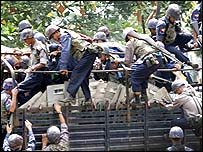 Hai ấn bản in báo của Nhân Dân Nhật Báo lại đưa câu chuyện theo cách khác. Ấn bản phát hành trong nước đăng bài tường thuật ở góc dưới bên phải của trang bốn, còn ấn bản phát hành ở nước ngoài thì đặt bài ở góc dưới bên trái của trang nhất. Tính tới 1400GMT ngày 28 tháng Chín, trang web của báo Nhân Dân vẫn không có tin gì về Miến Điện trên trang chủ. Tuy nhiên, trang này có đưa các tường thuật của Tân Hoa Xã trên trang tin quốc tế. Truyền hình quốc gia Truyền hình quốc gia, kênh trong nước CCTV-1 không nhắc gì tới Miến Điện trong bản tin thời sự chính lúc 1100gmt. Tuy nhiên, kênh CCTV-4 phát ra quốc tế đưa tin về cuộc điện đàm của Thủ Tướng Ôn Gia Bảo với ông Gordon Brown về Miến Điện trong chương trình Thời Sự Trung Quốc lúc 1300gmt. Đây là lần đầu tiên cuộc khủng hoảng Miến Điện được nhắc tới trên truyền hình Trung Quốc. Các cổng tin tức trực tuyến Các cổng tin tức và các trang web tin tức khu vực cũng đưa tin một cách dè dặt trong vấn đề Miến Điện. Đa phần các trang đều dùng lại tin của Tân Hoa Xã. Tuy nhiên, khác với truyền thông quốc doanh, có nhiều trang đã tường thuật tin Miến Điện ở ngay trang chủ, tuy không phải ở vị trí bắt mắt nhất. Mặc dù truyền thông đưa tin không mấy chi tiết nhưng tình hình bạo động tại Miến Điện rõ ràng đã thu hút rất nhiều sự quan tâm của người dân Trung Quốc. Theo con số thống kê của cổng tin tức rất nổi tiếng Sohu.com thì bản tin ngày 27 tháng Chín của Tân Hoa Xã với tựa đề "Miến Điện áp lệnh giới nghiêm nhưng hàng ngàn người vẫn xuống đường" đứng thứ tư trong số các tin tức quốc tế được quan tâm nhất trong ngày. Trang mạng Sohu thậm chí còn đăng tranh hoạt hình với cảnh một người lính to lớn chĩa súng AK-47 vào một nhóm các nhà sư kiên nhẫn nhưng bất lực, lưỡi lê của người lính Miến đâm thủng các biểu ngữ của các nhà sư đòi cải thiện đời sống cho người dân, trả tự do cho các tù nhân chính trị và hòa giải dân tộc. | CÁC BÀI LIÊN QUAN Có thêm biểu tình ở Rangoon29 Tháng 9, 2007 | Thế giới Đặc sứ LHQ tới Miến điện trong vài giờ29 Tháng 9, 2007 | Thế giới Phóng viên Nhật bị lính Miến Điện giết28 Tháng 9, 2007 | Trang Ảnh Miến Điện hay Myanmar?28 Tháng 9, 2007 | Thế giới Phóng viên Nhật tử nghiệp ở Rangoon28 Tháng 9, 2007 | Thế giới Miến Điện kiểm soát chặt thông tin28 Tháng 9, 2007 | Thế giới TRANG NGOÀI BBC BBC không chịu trách nhiệm về nội dung các trang bên ngoài. | ||||||||||||||||||||||||||||||||||||||||||||||||||||||||||||||||||||||||||||