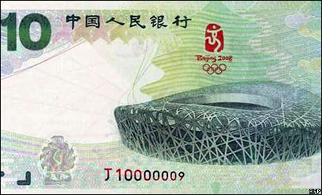 Lần đầu tiên trong gần một thập niên Trung Quốc in tiền giấy mới không đưa hình cố Chủ tịch Mao Trạch Đông. Tờ 10 nhân dân tệ (khoảng 1.5 USD) đã in hình sân vận động mới của Bắc Kinh và biểu tượng Thế Vận Hội 2008. Sáu triệu tờ sẽ được phát hành mặc dù đa số tiền giấy có mệnh giá khác vẫn tiếp tục có hình cố Chủ tịch Mao Trạch Đông, người sáng lập ra Đảng Cộng Sản Trung Quốc. Tức là hình của Mao sẽ vẫn nằm nhiều trong ví của người dân. Phóng viên BBC Quentin Sommerville tại Thượng Hải nói hình của Mao Chủ Tịch được đưa nhiều kể từ năm 1999 khi nhà chức trách dùng hình ông một phần là để chống nạn tiền giả mặc dù kết quả không được như ý. Phóng viên Sommerville nói hình tượng Mao vốn một thời thống lĩnh Trung Quốc đã phần lớn bị nhà cải cách đổi mới Đặng Tiểu Bình nhấn chìm. Được biết đã có một số bàn bạc trong chính giới về việc bỏ hình của Chủ tịch Mao và thay bằng Đặng Tiểu Bình nhưng hiện không có chương trình hành động nào cho đề nghị này. | CÁC BÀI LIÊN QUAN TQ đã sẵn sàng cho Olympics chưa?07 Tháng 7, 2008 | Thế giới Nhà máy tạm đóng cửa vì Olympics05 Tháng 7, 2008 | Thế giới Bắt đầu đường bay trực tiếp Trung-Đài04 Tháng 7, 2008 | Thế giới | ||||||||||||||||||||||||||||||||||||||||||||||||||||||||||||||||||||||||||||
