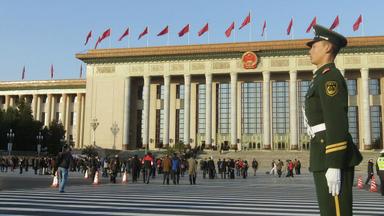 An ninh được đặc biệt tăng cường quanh khu Đại Lễ đường và Quảng trường Thiên An môn kế bên trong ngày thứ Năm. Vào lúc rạng sáng, cảnh sát đã lôi đi một người biểu tình gào thét trong lúc cờ Trung Quốc được kéo lên.