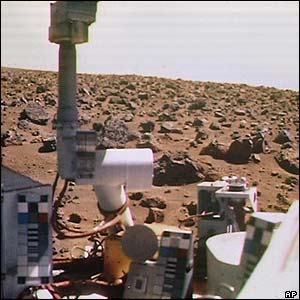 ![]() | Cú hạ cánh lịch sử của NASA được đánh dấu vào năm 1976 bằng hai thiết bị hạ cánh Viking đáp xuống bề mặt sao Hỏa. Khi đó thiết bị được trang bị hệ thống xét nghiệm sinh họ để tìm dấu vết của sự sống nhưng không đem lại được bằng chứng gì rõ rệt cả. Và cũng bắt đầu từ thời điểm đó, người ta bắt đầu tranh cãi kịch liệt, cộng thêm với luận điểm của giới địa chất cho rằng trên Sao Hỏa từng có nước với đầy đủ sông, hồ và đại dương. | ||