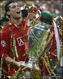 Cristiano Ronaldo đã được tạp chí France Football bầu làm cầu thủ Âu châu xuất sắc nhất trong năm. Ronaldo, 23 tuổi, đã chiếm được Quả Bóng Vàng sau khi ghi được 42 bàn trong lúc Manchester United chiếm được giải Champions League và đoạt ngôi vị Vô địch các đội Ngoại Hạng tại Anh trong mùa giải vừa qua. Trung phong Lionel Messi của đội Barcelona về nhì là trung phong Fernando Torres của Liverpool về ba. Wayne Rooney, Steven Gerrard và Frank Lampard cũng được nêu tên trong danh sách các cầu thủ nối tiếp Kaka trong ngôi vị ngôi sao hàng đầu của Âu châu. Tuy nhiên, vai trò của Ronaldo trong việc đưa Manchester United thắng hai giải trong mùa bóng vừa qua đã được một hội đồng gồm 96 nhà báo thể thao, bầu chọn. Thành tích ghi được 42 bàn thắng đã giúp cho Ronaldo đoạt được giải Chiếc Giày Vàng tức là giải dành cho cầu thủ ghi bàn nhiều nhất Âu châu, và Ronaldo là cầu thủ chạy góc đầu tiên nhận được vinh dự này. Bàn thắng thứ 42 Ronaldo ghi được là trong trận chung kết giải Champions League giữa hai đội Manchester United và Chelsea mà hai đội hòa nhau 1-1. Ronaldo đã đá hỏng trái đá luân lưu nhưng Manchester United vẫn thắng. Trong mùa hè vừa qua, đã có nhiều đồn đoán về tương lai của Ronaldo sau khi anh nói lên ước mơ được về đá cho đội Real Madrid của Tây Ban Nha. Nhưng Manchester United đã tăng sức ép và vào tháng 10 vừa qua, Ronaldo đã cam kết ở lại sân Old Trafford. | CÁC BÀI LIÊN QUAN Ronaldo quyết tâm khi đối đầu Arsenal 07 Tháng 11, 2008 | Bóng đá Sir Alex Ferguson bảo vệ Ronaldo 01 Tháng 12, 2008 | Bóng đá Tiền đạo Torres tạm nghỉ thi đấu28 Tháng 11, 2008 | Bóng đá Gerrard không đá giao hữu với Đức17 Tháng 11, 2008 | Bóng đá | |||||||||||||||||||||||||||||||||||||||||||||||||||||||||||||||||||||||||||||||