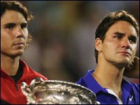 Rafael Nadal nói chiến thắng đầu tiên đoạt Grand Slam trên sân mặt cứng có ý nghĩa đặc biệt sau khi đánh bại Roger Federer tại Autralian Open. Tay vợt Tây ban nha giành chiến thắng trong trận chung kết với tỷ số 7-5 3-6 7-6 (7-3) 3-6 6-2 và bổ sung thêm vào thành tích chiến thắng bốn Grand Slam ở giải French Open và một Grand Slam tại Wimbledon. Nadal, 22 tuổi và là tay vợt hàng đầu thế giới nói "Giành chiến thắng trên sân mặt cứng là ước mơ của tôi". "Tôi tập luyện rất vất vả để nâng cao kỹ thuật chơi trên các sân ngoài sân đất nện" Federer đã cố gắng đạt ngang bằng thành tích của Pete Sampras, tay vợt vốn đoạt 14 Grand Slam và Nadal cảm nhận được điều này khi anh hạ gục đối thủ của mình. "Tôi lấy làm tiếc rằng đó là thời điểm khó khăn cho Roger," Nadal nói. "Tôi biết ở trong tình thế như vậy thì sẽ như thế nào". "Tuy nhiên, quí vị đã biết, Roger là nhà vô địch lừng danh. Anh là tay vợt xuất sắc nhất. Và chắc chắn anh sẽ là người rất quan trọng cho môn thể thao này". Lợi thế tay trái Sau trận chung kết, Federer nói anh cảm thấy Nadal luôn có lợi thế là người chơi thuận tay trái.