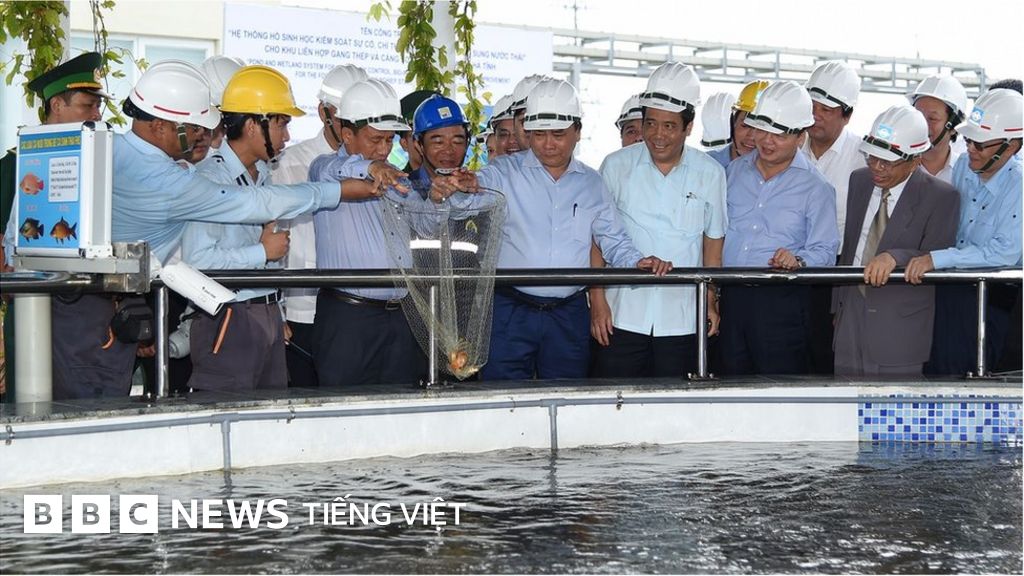 Ông Phúc được nghe trình bày nước nhà máy thép Formosa Hà Tĩnh xả thải ‘có thể nuôi được cá’.