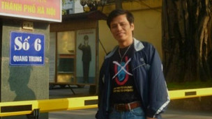Cây bút Nguyễn Hữu Vinh trước cơ quan công an Hà Nội