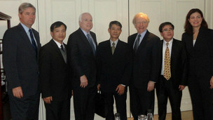 Các vị S. Whithouse, Nguyễn Văn Đài, J. McCain, Phạm Hồng Sơn, J.Lieberman, Lê Quốc Quân và bà Kelly Ayotte trong một cuộc gặp mặt tại Hà Nội hồi đầu năm