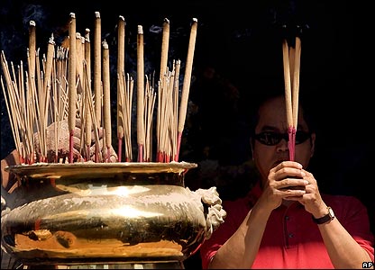 Người người đi đốt nhang cầu khấn cho một năm mới tốt lành.