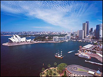 Máy bay của hãng hàng không Qantas hạ dần độ cao, đảo một vòng thật đẹp trên bầu trời nhà hát Opera House, hay người Việt còn gọi là Con Sò, tại tp Sydney, nơi nổi tiếng toàn cầu với việc tổ chức thế vận hội Olympic năm 2000. Cơ trưởng không quên nháy loa cho hành khách để ý bên dưới, theo ông, là một công trình kiến trúc tuyệt vời, mái cong bê tông được thiết kế hài hòa với các yếu tố sóng, nước, không khí, và biển, một thắng cảnh được du khách chụp hình nhiều nhất tại nước Úc. Anh bạn người Anh ngồi cạnh tôi lần đầu tiên tới Úc tỏ vẻ hào hứng, mồm không ngớt ngợi khen khung cảnh các vịnh biển lớn nhỏ bao quanh thành phố Sydney. Trên cao nhìn xuống chúng giống như những ốc đảo màu xanh đậm, với mái ngói đỏ, hồ bơi, sân gôn, hàng cọ, như càng làm toát lên vẻ đẹp tuyệt vời của nước biển xanh màu ngọc bích. Không gian sạch sẽ, im lặng, đây đó lác đác một vài người đi dạo, hay đang làm vườn. Đúng là vùng cư trú của giới thượng lưu lắm của nhiều tiền. Biết tôi hiểu biết đôi chút về lịch sử nước Úc, anh hồ hởi đưa ra nhận xét rằng đối với những người tha phương cầu thực, trong đó có người Anh, người Việt Nam, cùng hơn 100 sắc dân khác, từ nhiều năm qua, Úc châu là một lục địa hấp dẫn. Liệu độ hấp dẫn này nay có còn? Tôi với anh cùng say sưa trò chuyện. Chuyện về Úc châu có nhiều lắm. Một đảo quốc lớn vào hàng thứ hai trên thế giới, diện tích chỉ sau dải đất Greenland băng giá không mấy người sống thuộc chủ quyền xứ Băng Đảo. Người ra gọi Úc châu là Down Under, hay vùng hạ, nơi ngó ra biển Nam Cực, nhưng là một phần của thế gian năm châu bốn bể, nằm ngoài các trung tâm hay sinh sự trên thế giới, với tài nguyên thiên nhiên hầu như vô tận, người Úc từ lâu đã gọi họ là quốc gia may mắn. Nhưng tại sao trái chuối gần đây đã làm cho nhiều người Úc thức tỉnh về bản chất thích kiểm soát của đất nước họ? Lạm phát hình quả chuối? Giá chuối tăng vọt là nguyên nhân gây ra lạm phát tại Úc châu. Liệu lập luận này có nghe được không? Chẳng nhẽ một quốc gia phát triển, với thể chế Tây Phương như Úc lại đứng cùng bảng với các nước cộng hòa chuối vùng Caribbe ở châu Mỹ la tinh?