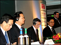 Chiều 4/3 Thủ tướng Nguyễn Tấn Dũng cùng phó Thủ tướng Phạm Gia Khiêm và Bộ trưởng Kế hoạch và Đầu tư Võ Hồng Phúc đã tới tham dự diễn đàn doanh nghiệp Anh Việt, tổ chức tại khách sạn Intercontinental ở London. Ông Dũng đã có bài ‘nói vo’ về những thành tích kinh tế của Việt Nam trong thời gian gần đây, và kêu gọi các nhà đầu tư Anh Quốc quan tâm và vào làm ăn tại Việt Nam. Thông điệp đưa ra là môi trường đầu tư ở Việt Nam nay đã cải thiện rất nhiều và chính phủ mời các doanh nghiệp vào đầu tư. | CÁC BÀI LIÊN QUAN Chùm ảnh ký kết văn bản hợp tác05 Tháng 3, 2008 | Trang Ảnh Thủ tướng Việt Nam thăm khu tài chính04 Tháng 3, 2008 | Trang Ảnh Ngày đầu của ông Dũng tại Anh04 Tháng 3, 2008 | Việt Nam | ||||||||||||||||||||||||||||||||||||||||||||||||||||||||||||||||||||||||||||