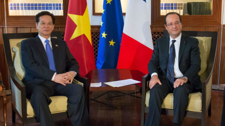 Hai ông Nguyễn Tấn Dũng và Francois Hollande gặp mặt ở Lào