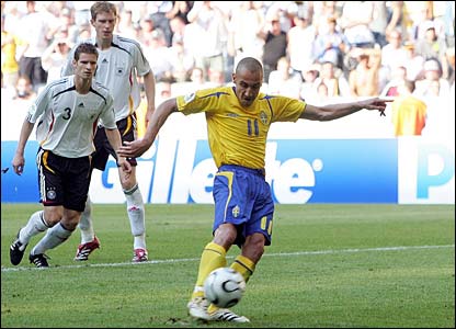 Hi vọng của Thụy Điển muốn thay đổi tình thế có vẻ ngày càng mong manh khi Henrik Larsson đá hỏng cú phạt đền ở phút thứ 53