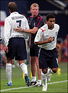 Hiệp hai bắt đầu khá đen đủi cho đội Anh, khi Beckham bị chấn thương và phải bị thay thế bằng Aaron Lennon