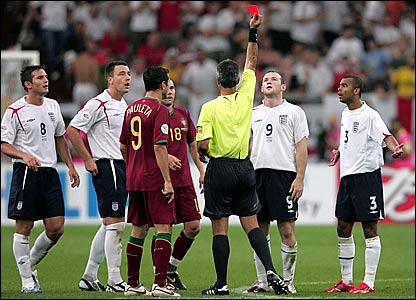 Tiền đạo trẻ nóng tính này của Anh Quốc không thể tin được khi trọng tài Horacio Elizondo của Argentina giơ ra thẻ đỏ dành cho cú xấu chơi của anh | CÁC BÀI LIÊN QUAN Hình ảnh trận Anh - Bồ Đào Nha (2)01 Tháng 7, 2006 | World Cup | ||||||||||||||||||||||||||||||||||||||||||||||||||||||||||||||||||||||||||||