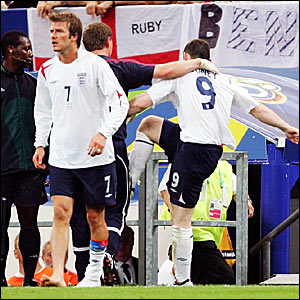 Rooney còn trút sự tức giận và thất vọng khi đã ra ngoài sân, trong khi Beckham tập tễnh bước ra phản đối quyết định của trọng tài