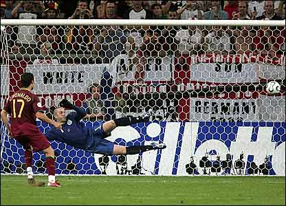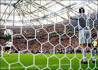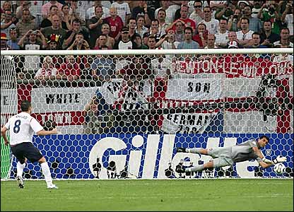 Hugo Viana và Petit đều đá ra ngoài, trong khi Hargreaves ghi bàn thắng đầu cho Anh, thế nhưng sau đó, Ricardo đẩy được cú sút của Gerrard