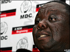 Ông Tsvangirai đang có mặt tại Botswana, nơi ông được trích lời nói rằng ông phải rời Zimbabwe đang căng thẳng để tìm sự trợ giúp. Về cuộc bầu cử Quốc hội, lần đầu tiên kể từ khi giành độc lập, đảng cầm quyền Zanu-PF đã mất đa số trong Quốc hội, với chỉ 97 ghế so với 99 ghế của MDC. Một phe phái nhỏ thuộc MDC giành được 10 ghế. | CÁC BÀI LIÊN QUAN Toà án Zimbabwe xét kết quả bầu cử07 Tháng 4, 2008 | Trang chủ Phá im lặng hậu bầu cử Zimbabwe05 Tháng 4, 2008 | Trang chủ 'Không cần' bầu vòng hai Zimbabwe05 Tháng 4, 2008 | Trang chủ Ủng hộ Mugabe tranh cử vòng hai04 Tháng 4, 2008 | Trang chủ Cảnh sát Zimbabwe kiểm tra văn phòng phe đối lập03 Tháng 4, 2008 | Trang chủ Zimbabwe có thể bầu cử thêm vòng hai02 Tháng 4, 2008 | Trang chủ TRANG NGOÀI BBC BBC không chịu trách nhiệm về nội dung các trang bên ngoài. | ||||||||||||||||||||||||||||||||||||||||||||||||||||||||||||||||||||||||||||