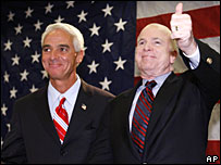 Cựu tổng thống Jimmy Carter của đảng Dân chủ được trích lời nói rằng với phe Dân chủ, việc chọn ai đứng cùng liên danh với ông Obama “cơn ác mộng.” Ông Carter nói với báo Anh rằng ông kịch liệt phản đối việc chọn bà Hillary Clinton. Phe kia cũng không dễ Nhưng với phe Cộng hòa chuyện cũng không dễ. Cho tới nay, người giúp nhiều cho ông John McCain lại là Thượng nghị sĩ Dân chủ Joseph Lieberman. Người ta cũng đặt cả tình huống ông này sẽ được chọn. Tuy thế, The Guardian cho rằng hai nhân vật hàng đầu có khả năng được chọn nhất là Charlie Crist và Mitt Romney. Thống đốc Florida Charlie Crist (sinh năm 1956) được bình rằng “đủ trẻ, đủ bảo thủ” để giúp Thượng nghị sĩ McCain cân bằng lại độ tuổi đã 72 của ông, và trấn an những ai theo đảng Cộng hòa vốn cho rằng ông “thiên tả” hay không bảo thủ lắm. Ông Mitt Romney, cựu thống đốc Massachusetts tuy rớt khỏi cuộc đua nhưng cũng thắng trong 11 tiểu bang ở vòng tranh cử sơ bộ của đảng Cộng hòa. Theo đạo Mormon, ông gây dị nghị trong một số người Cơ đốc giáo nhưng lại có tiếng là quản trị giỏi và hấp dẫn với giới kinh doanh. Hẳn ông McCain cũng không quên ơn ông Romney đã tuyên bố ủng hộ mình khi rời cuộc đua hồi giữa tháng 2/2008. Quyết định chọn ai làm ứng viên phó tổng thống vừa phản ánh quan điểm của ứng viên tổng thống, lại phải cân bằng với nhu cầu của đảng, cho dù đó là phe Cộng hòa hay Dân chủ. | CÁC BÀI LIÊN QUAN Obama tuyên bố thắng lợi04 Tháng 6, 2008 | Trang Ảnh Clinton sẽ ủng hộ Obama05 Tháng 6, 2008 | Trang chủ Obama cam kết ủng hộ Israel04 Tháng 6, 2008 | Trang chủ Vì sao Obama thắng Clinton?04 Tháng 6, 2008 | Trang chủ Bà Clinton sẽ vẫn đua tiếp03 Tháng 6, 2008 | Trang chủ Bà Clinton gặp trở ngại01 Tháng 6, 2008 | Trang chủ TRANG NGOÀI BBC BBC không chịu trách nhiệm về nội dung các trang bên ngoài. | ||||||||||||||||||||||||||||||||||||||||||||||||||||||||||||||||||||||||||||