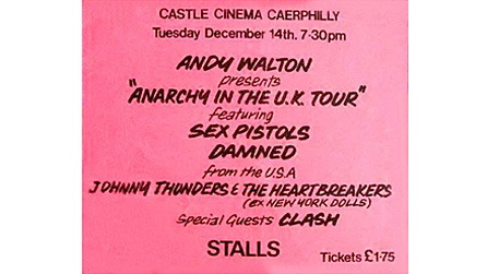 The ticket to Sex Pistols in Caerphilly, scan taken from www.thesexpistols.co.uk.